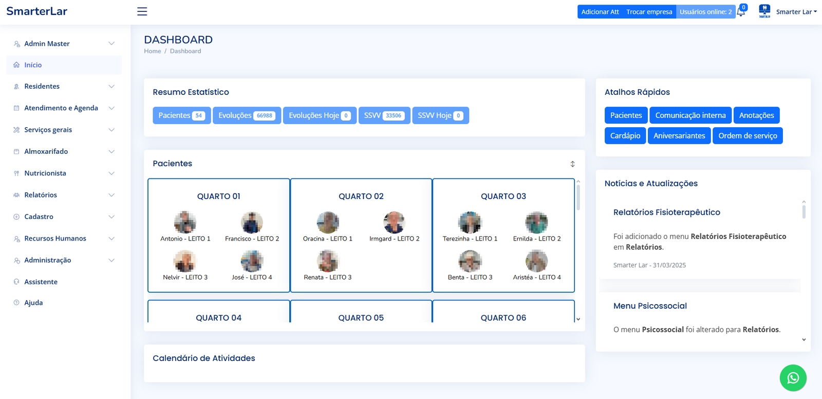 Atualmente, sou responsável pelo desenvolvimento do SmarterLar, um sistema completo de gerenciamento para ILPIs (Instituições de Longa Permanência para Idosos), onde aplico minha experiência tanto em programação quanto na área da saúde.