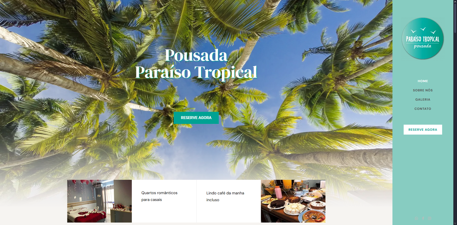 Integração com redes sociais: links para as páginas oficiais da pousada, permitindo aos visitantes acompanhar novidades e avaliações.