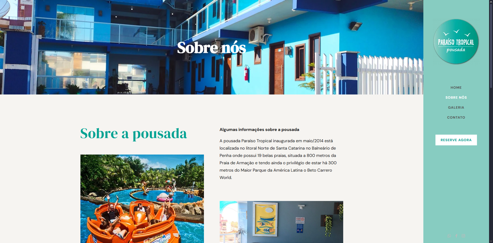 O site da Pousada Paraíso Tropical foi desenvolvido com o objetivo de apresentar de forma clara e atrativa as acomodações e serviços oferecidos pela pousada, localizada em Penha, Santa Catarina, a poucos metros do parque Beto Carrero World. A plataforma proporciona aos visitantes uma navegação intuitiva, com informações detalhadas sobre os quartos, comodidades, localização e formas de contato.