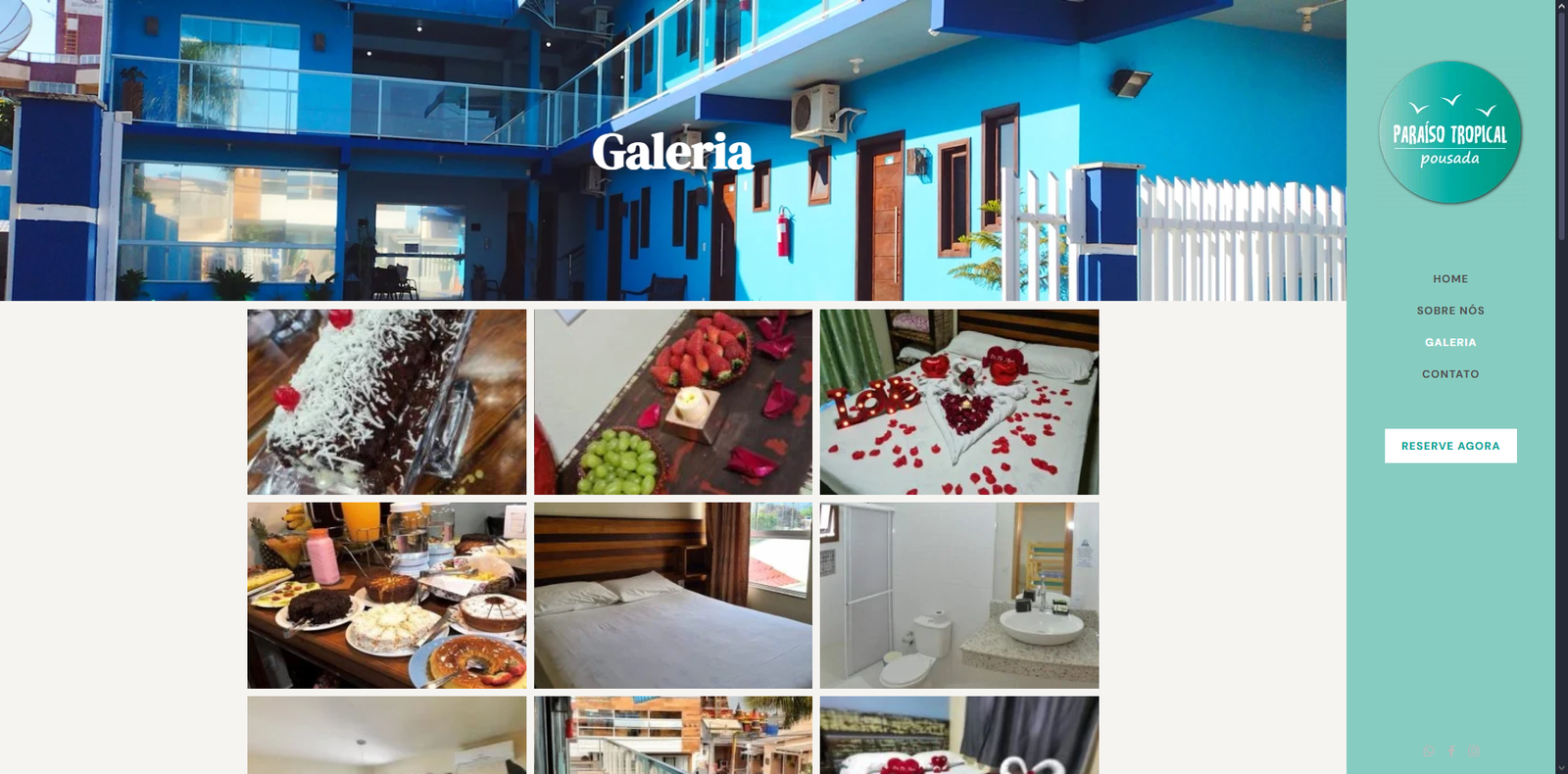 Integração com redes sociais: links para as páginas oficiais da pousada, permitindo aos visitantes acompanhar novidades e avaliações.